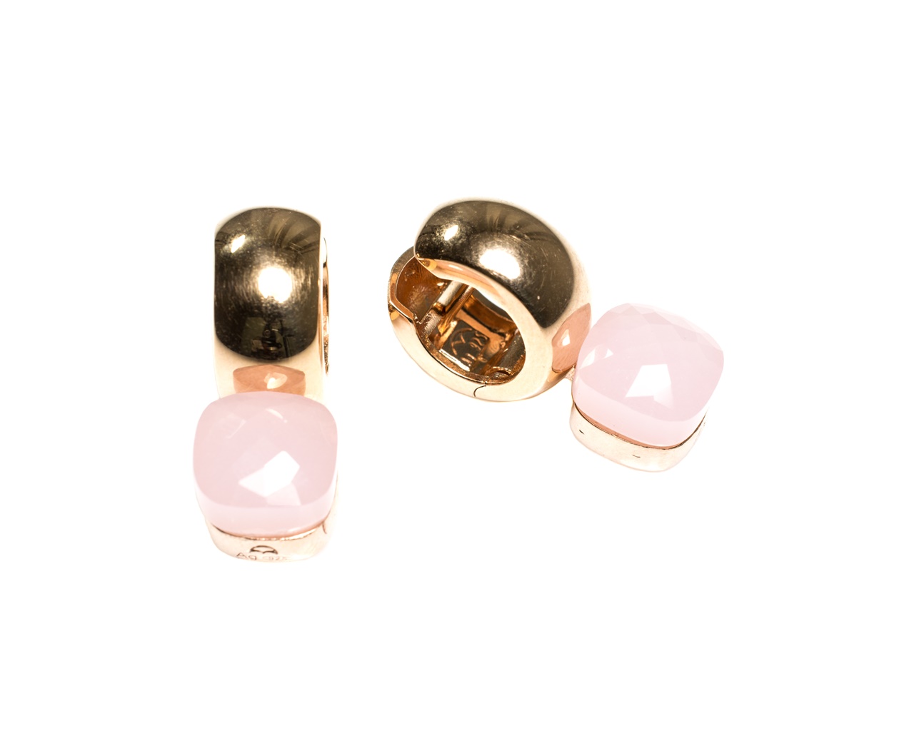 Einhänger: Facettierte Quarzglas , Farbe rosa 10 x 10mm Silber