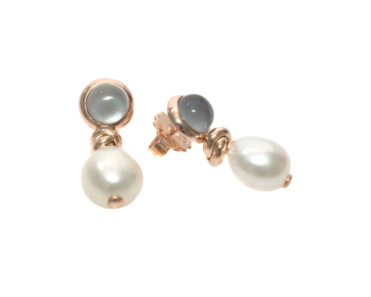 Das graue Katzenauge ist ca. 0.9 cm mit Cabochon Schliff und die weisse Süsswasserperle ca. 1.3cm.